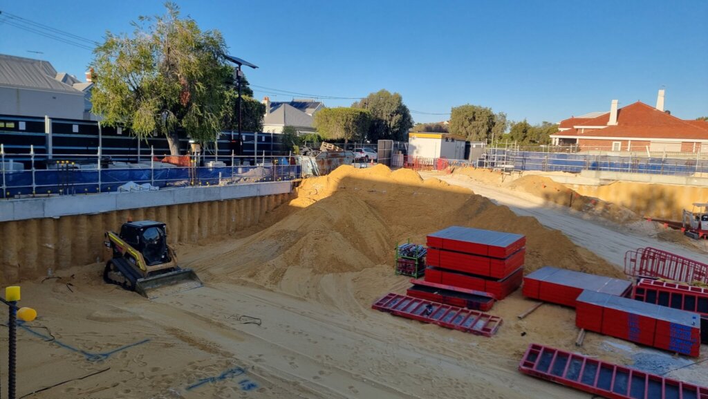 Basement excavation is now fully complete across the site, with the exception of the access ramp, which is being retained to allow vehicle access into and out of the basement.