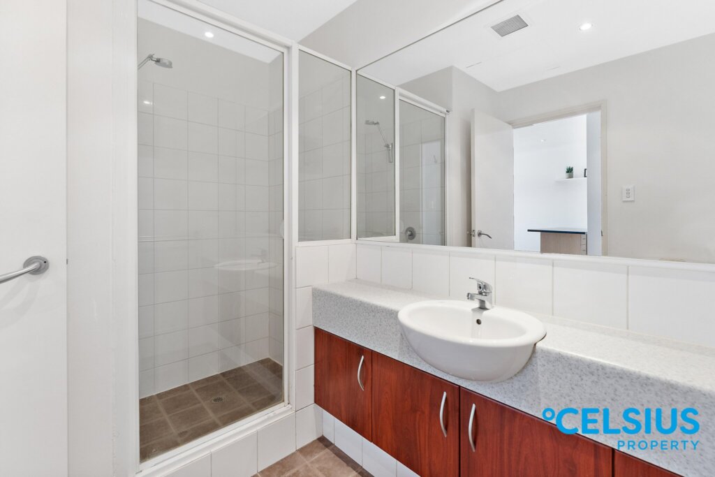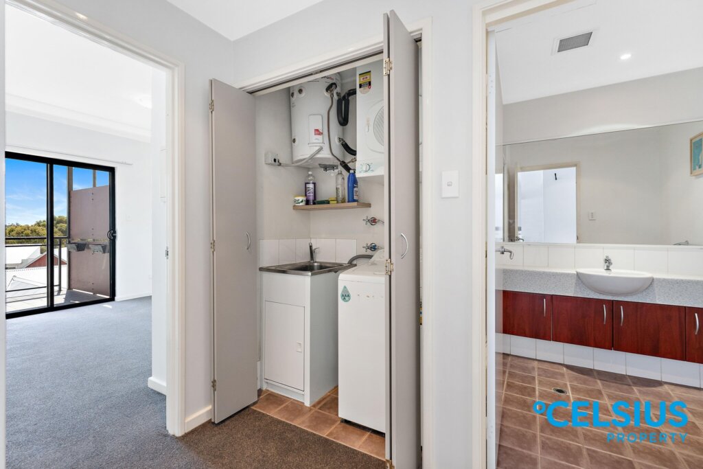 It has a roomy, open-plan living area opening onto the generously sized, North- West facing balcony overlooking the Swan River – Just imagine watching the beautiful Perth sunsets from the comfort of your own home!