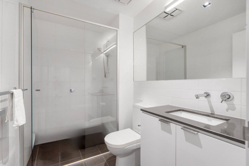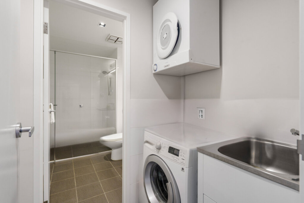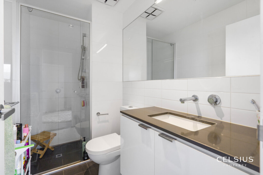 This spacious two bedroom, two bathroom modern apartment has the added luxury of being east-facing to soak up the morning sun on a gorgeous balcony! Sip your morning coffee here or relax after a day’s work with a glass of wine. Living spaces feature high ceilings for that feeling of space and luxury.