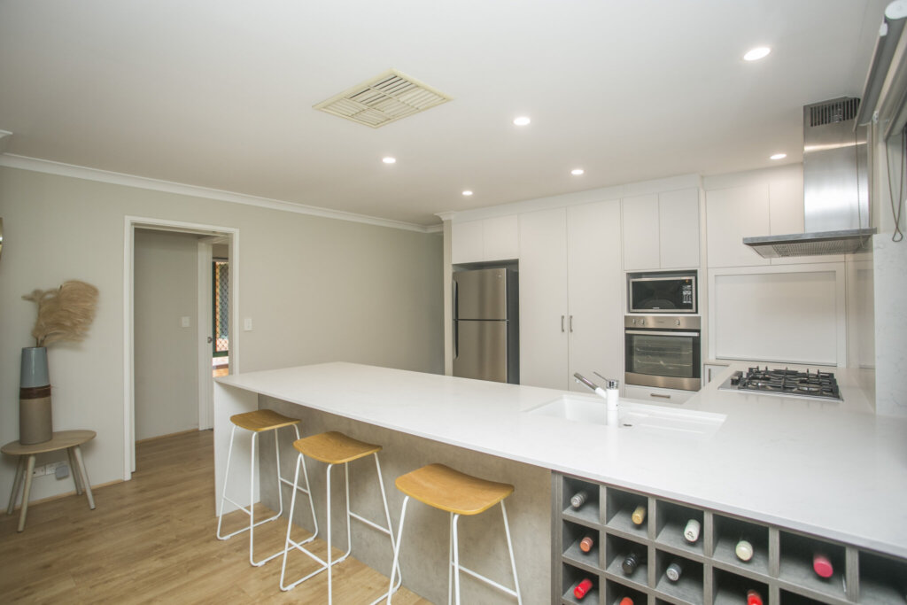 – huge kitchen with plenty of cabinetry space and a breakfast bar